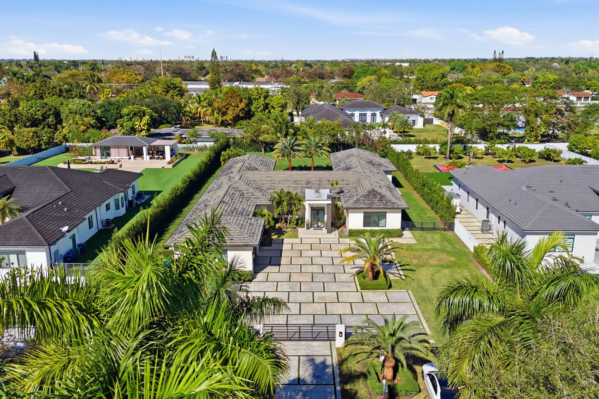 Built for Miami living: heated pool, outdoor BBQ, space for a guest house, gym, or pickleball court